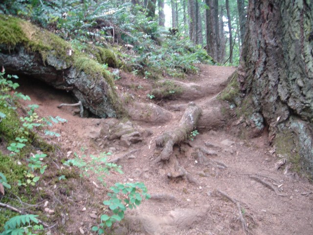 At about 1200ft of elevation, I hit the mossy-rock area of the trail (shown above). This area is a trip and, not only can I bug-out to it, but several moss-covered, rock-lined depressions are adjacent to the trail. From here, you ascend many, many switchbacks at a high pitch the climb up to Benson Plateau.