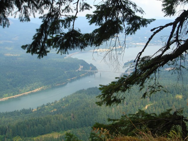At about 2700ft, the trail opens up for a great view of the gorge, including Bonneville dam and the Bridge of the Gods.