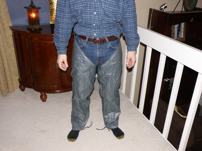 In all reality, rain chaps are great when used with a ponchotarp or cape as they cover one’s midsection and provide ease in taking a leak. One might argue that rain pants/chaps aren’t really necessary, but at 2.2 oz they provide insurance against getting soaked. These are much lighter than my full-length rain pants at 7.25 oz and are much easier to take on/off in the event of a downpour. Now only if someone made an ultralight black silnylon fisherman’s cap . . ..