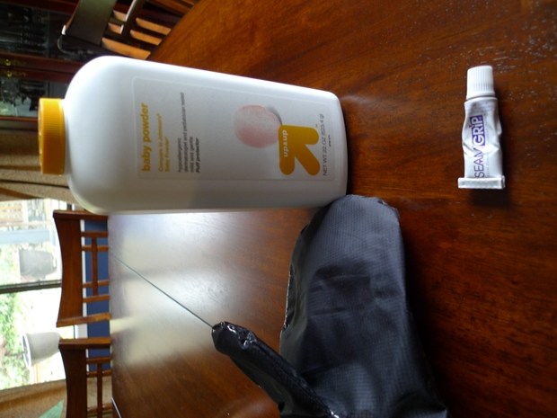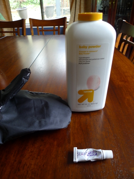 Items required for seam-sealing: McNett Seam Grip and Talcum Powder!