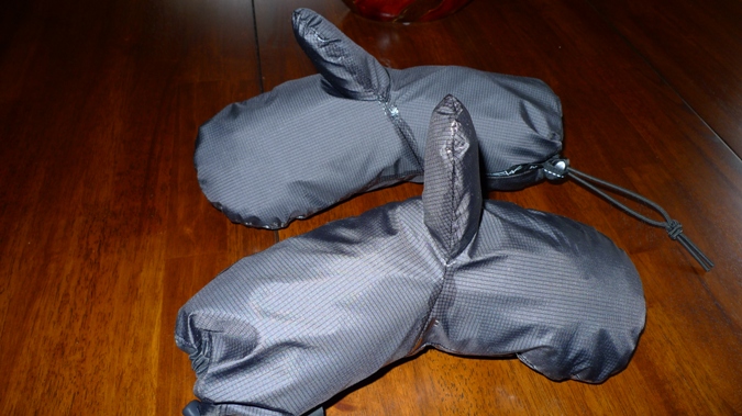• They weigh an extremely light 1.25 oz when sealed, which is very light for a product that can replace gloves for most backpacking use. I’ll note that these are only a few tenths of an ounce lighter than possomdown gloves, so depending upon the weather can either be used by themselves or in conjuction with gloves for use in freezing conditions.