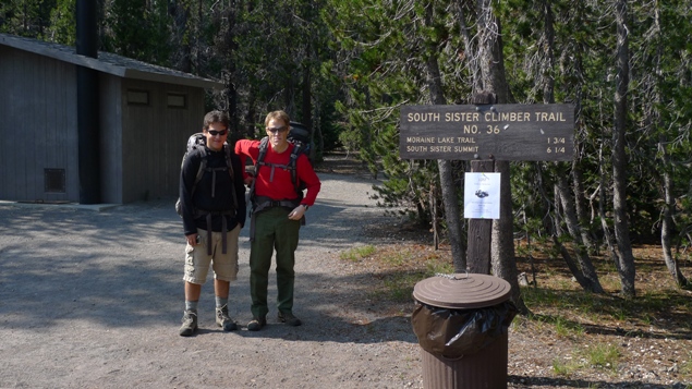 To climb South Sister, you can depart either from Devils Lake or Green Lakes trailhead. We chose Devils Lake, which is about 25 miles outside of Bend on Cascade Lakes Hwy/SW Century Dr. The trailhead has bathrooms and ample parking if you include the lot and the roadside. At 5,450 feet, Devils Lake is 6.25 miles from the summit.
