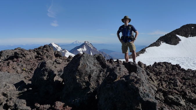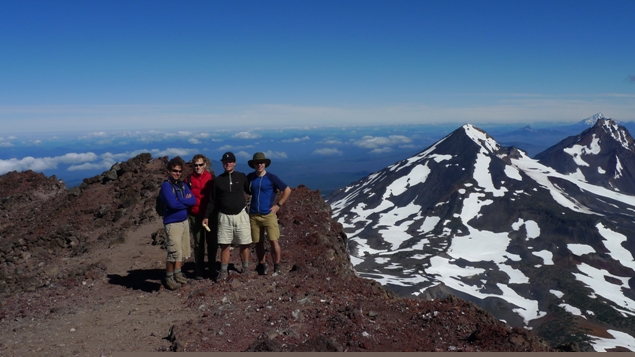 Chef and Grunt arrived about 10 minutes after me and we discussed the lack of a USGS marker at this location, indicating that the true summit was across the crater on the other side. I saddled my pack on my back and sped across the crater to the other side and up ~100 feet to the true summit. I arrived at the true summit at 9:30am. The rest of our party arrived just before 10am. Last to arrive was Mr. Picky. The band of brothers all made it to the summit without issue!